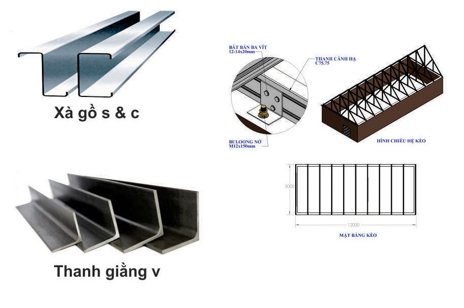 Hệ giằng cho xà gồ 100, 150, 200 và 250mm. Thanh giằng C51x28x1.5.